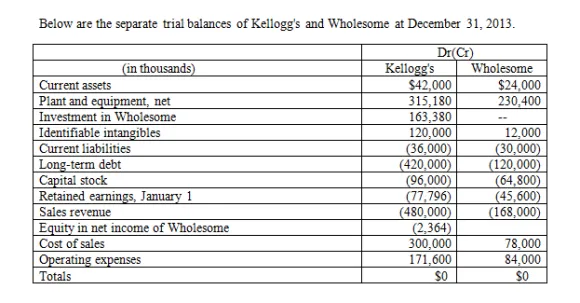 Below are the separate trial balances of Kellogg's and Wholesome at December 31, 2013.