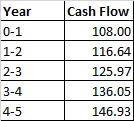 Estimated cash flows for 5 years (growing 8% p.a.) will be as followed :