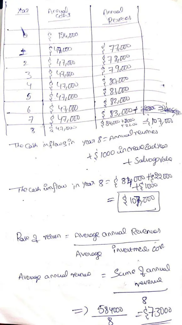 Barron Chemical uses a thermoplastic polymer to enhance the appearance of certain RV panels. The initial cost of one process was $124,000 with annual costs of $47,000. Revenues are $77,000 in year 1, increasing by $1000 per year. A salvage value of $22,000 was realized when the process was discontinued after 8 years. What rate of return did the company make on the process?