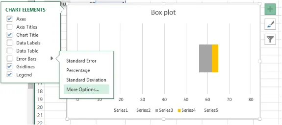 Step 4: Click on the right box > Add Chart Element > Error Bar > More Options > OK. The screenshot is shown below,