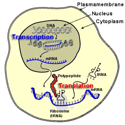 Transfer RNA (tRNA) is the key to deciphering the code words in mRNA. Each type of amino acid has its own type of tRNA, which binds it and carries it to the growing end of a polypeptide chain if the next code word on mRNA calls for it. The correct tRNA with its attached amino acid is selected at each step because each specific tRNA molecule contains a three-base sequence that can base-pair with its complementary code word in the mRNA.