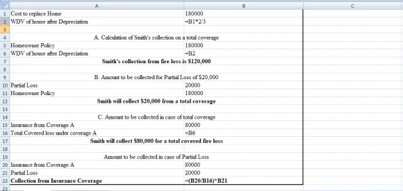 1) How much will the Smith’s collect for a total covered fire loss under coverage A?