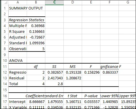 Step 3: Select Input Y Range: 'y' column, Input X Range: 'x1' column then OK. The screenshot is shown below,