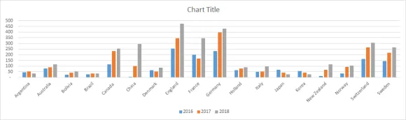 1.You are a mid-level manager for the Concov Company, a large manufacturer of industrial heat pumps. Make a short sales report of the increased business your firm has experienced overseas. The sales figures below are for years 2016, 2017, & 2018, respectively. : • Argentina, 45, 53, 34 • Australia, 78, 90, 115 • Bolivia, 23, 43, 52 • Brazil, 29, 34, 35 • Canada, 116, 234, 256 • China, 7, 100, 296 • Denmark, 65, 54, 87 • England, 256, 345, 476 • France, 198, 167, 345 • Germany, 234, 398, 429 • Holland, 65, 80, 89 • Italy, 49, 52, 97 • Japan, 67, 43, 29 • Korea, 55, 43, 28 • New Zealand, 12, 69, 114 • Norway, 33, 92, 104 • Switzerland, 164, 266, 306 • Sweden, 145, 217, 266 You can add any visuals you like for example graphs.