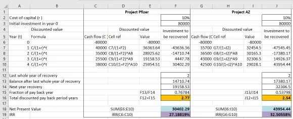 Reason: Project AZ has lower discounted pay back period, higher NPV (though initial investment is equal for both the projects) and higher IRR.