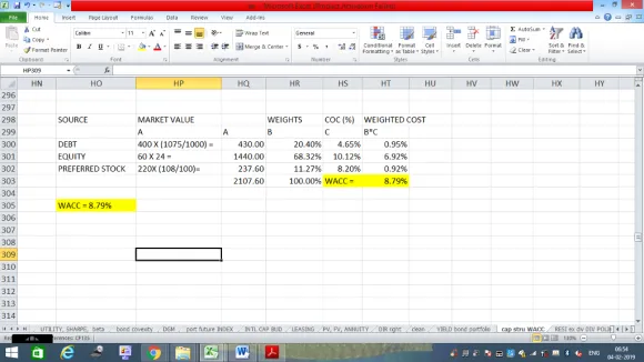 The Horizon Corp. has 60 million shares of common stock with a current market price of $24.00 per share. They have $400 million in par value of long-term bonds outstanding that currently sell for $1,075 per $1,000 par value. The bonds have a coupon rate of 8.5% and a maturity of 20 years. Assume semi-annual coupon payments. Horizon also has $220 million in par value of preferred stock with a current market price of $108 per $100 of par value. The dividend on this preferred stock is $8.50 per year.
