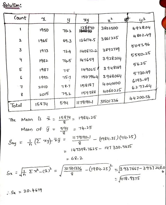 during 1985−1990 and to 76.2 years during 1990−1995. Construct a