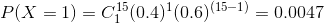 P ( X > 9 ) = P ( X = 10 ) + P ( X = 11 ) + P ( X = 12 ) + P ( X = 13 ) + P ( X = 14 ) + P ( X = 15 )