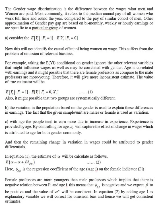 Now what variation in the data is used to identify the male-female difference in earnings? How would the estimate of α change relative to question 2 if females are over-represented in the higher paying faculties/colleges? What is the difference between running this regression and running regression 3 separately for each faculty/college?