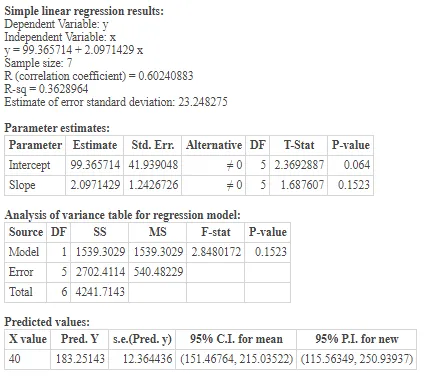 As part of a research program for a new cholesterol drug, a pharmaceutical company would like to investigate the relationship between the ages and LDL (low-density lipoprotein) cholesterol of men. The accompanying data set shows the ages and LDL cholesterol levels of seven randomly selected men. Construct a 95% prediction interval to estimate the LDL cholesterol level of a 40-year-old man.