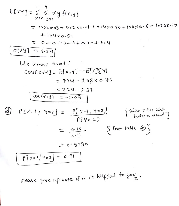 2(c). [6pts] Find Cov(X, Y ). Problem 2(d). [6pts] Find P(X = 1|Y = 2).