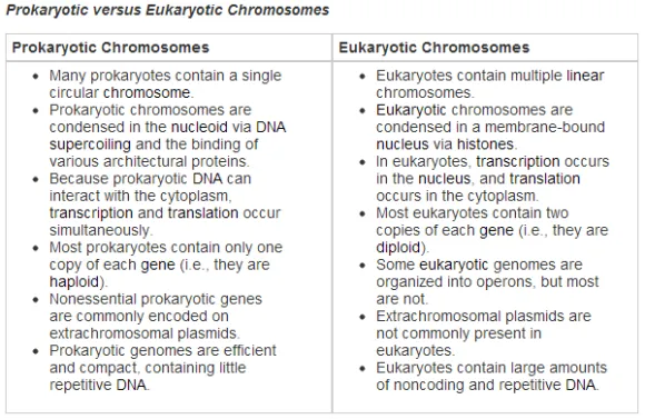 Prokaryotes also differ from eukaryotes in the structure, packing, density, and arrangement of their genes on the chromosome. Prokaryotes have incredibly compact genomes compared to eukaryotes, mostly because prokaryote genes lack introns and large non-coding regions between each gene.
