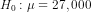 = $ 27,000 (Hypothesized mean), σ = 6000 (Pop. Std. Dev),