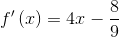 f′(x)=4x−8/9