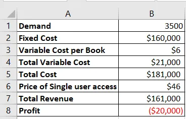 | (c) | Use Goal Seek to answer the following question. With a demand of 3,500 copies, what is the access price per copy that the publisher must charge to break even? |