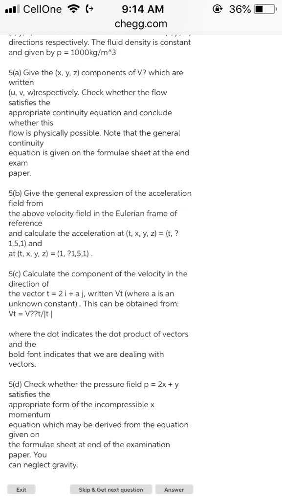 5(d) Check whether the pressure field p = 2x + y satisfies