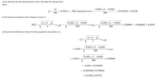 The fraction of defective integrated circuits produced in a photolithography process is being studied. A random sample of 300 circuits is tested, revealing 15 defectives. (a) Calculate a 95% two-sided confidence interval on the fraction of defective circuits produced by this particular tool. Round the answers to 4 decimal places. Entry field with incorrect answer now contains modified data less-than-or-equal-to p less-than-or-equal-to Entry field with incorrect answer now contains modified data (b) Calculate a 95% upper confidence bound on the fraction of defective circuits. Round the answer to 4 decimal places. p less-than-or-equal-to Entry field with incorrect answer now contains modified data