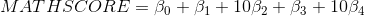 MATHSCORE as a function of SMALL, TCHEXPER, BOY and BOY*TCHEXPER,