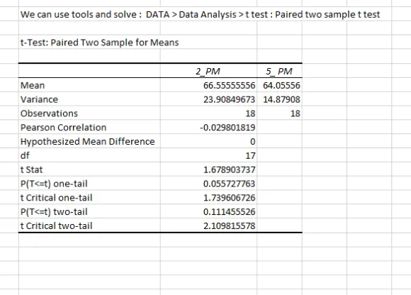 ## critical value : 2.1098 ( used T.DIST(1.678 , 17 , 2)