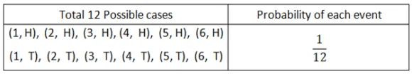 If a die is rolled then atere are 6 possible cases i.e. 1, 2, 3, 4, 5, 6. However, if we toss a coin then we get head (H) and tail (T) as the possible cases.
