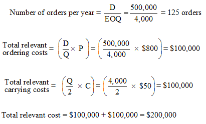 Thus, the EOQ quantity and total relevant costs are higher if the company ignores holding costs when evaluating managers, but only by about 3%. The square root in the EOQ model reduces the sensitivity of the ordering decision to errors in parameter estimates.