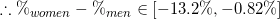 The 95% confidence interval for the true difference between the proportions of all U.S adult women and men who would answer “Yes” to the question was between -13.2% and -0.82%.