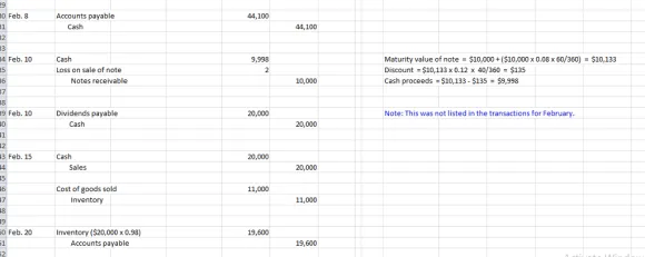 Feb 20 The company purchases $20,000 of inventory on account with the terms 2/10, net 30.