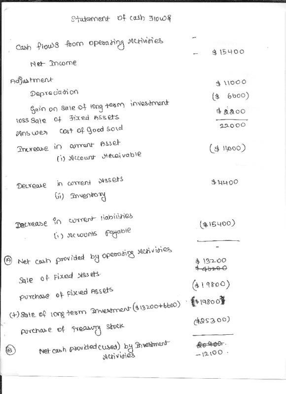 | Decrease in accounts payable | Answer |