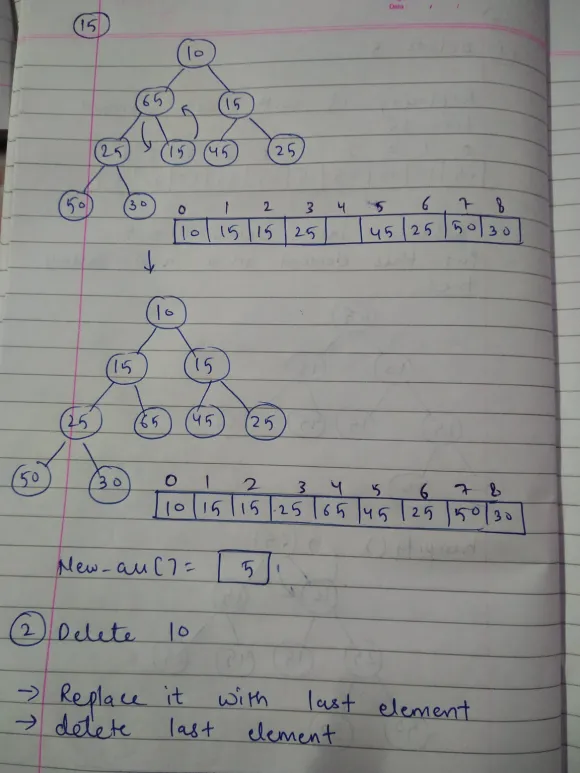 by the last element and delete the last element of the Heap.