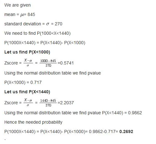 The Bank of Connecticut issues Visa and MasterCard credit cards. It is estimated that the balances on all Visa credit cards issued by the Bank of Connecticut have a mean of $845 and a standard deviation of $270. Assume that the balances on all these Visa cards follow a normal distribution. a. What is the probability that a randomly selected Visa card issued by this bank has a balance between $1000 and $1440? b. What percentage of the Visa cards...