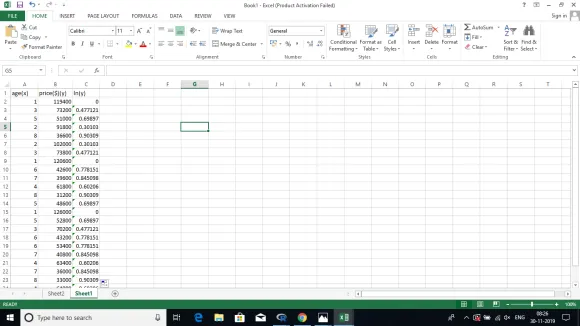 has been recently sold. The sale price as a function of the age of the car is in the Excel