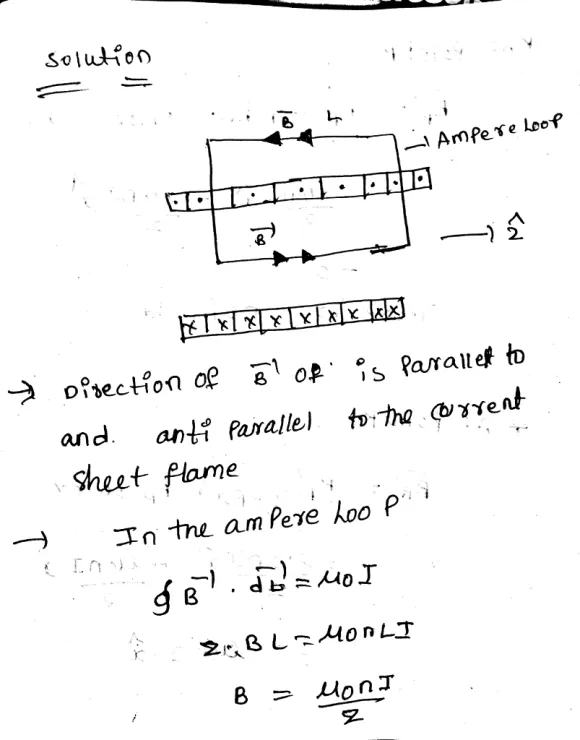 Long, straight conductors with square cross section each carrying current I, are laid side-by-side to form arn infinite current sheet with current directed out of the plane of the page (see the figure (Figure 1)). A second infinite current sheet is a distance d below the first and is parallel to it. The second sheet carries current into the plane of the page. Each sheet has n conductors per unit length.