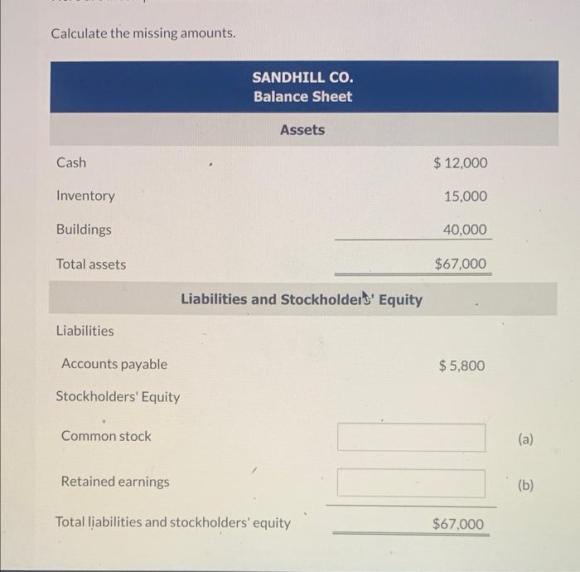 Prepare the required financial statements from the information provided.
