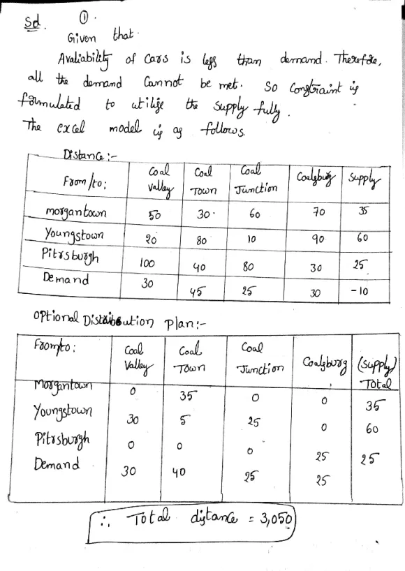 The krampf lines railway company specializes in coal handling. On friday, April 13, krampf had empty cars at the following towns in the quantities indicates:-