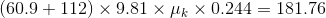 Equating the two quantities and solving for the coefficient of kinetic friction