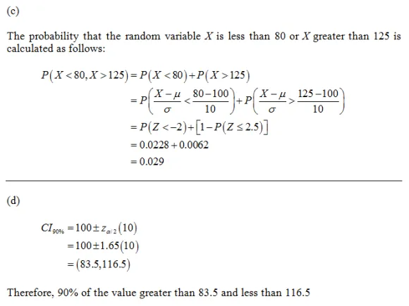 c.The probability that X<80 or X> 125 is ____(please round to four decimal places as needed)