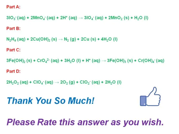 3IO3- (aq) + 2MnO4- (aq) + 2H+ (aq) → 3IO4- (aq) + 2MnO2 (s) + H2O (l)