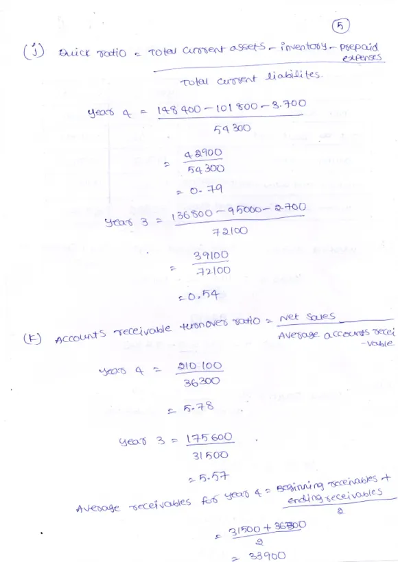 Calculate the following ratios for Year 3 and Year 4. Since Year 2
