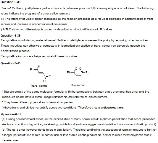 6-39: Suggest a reason why the starting material (trans-1,4-diphenyl-2-butene-1,4-dione) should be recrystallized(or pure) prior to use ( NOTE: you did not perform the recrystallization, but were provided with the recrystallized material).