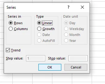 In the Linear trend, the items that we are projecting grow by a fixed amount each year