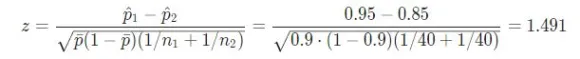 X1+X2/N1+N2= 38+34/40+40= 0.9