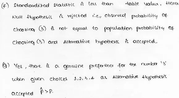 g. Based on the standardized statistic, state the conclusion that you would draw about the research question of whether students tend to have a genuine preference for the number 3 when given the choices 1, 2, 3, and 4.