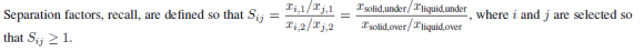 Perry's handbook gives an approximate correlation for the capital cost of a sedimentation vessel as cost [ U $ ] = 147d1.38 , where diameter d ranges between 10 and 225 feet . We stated at the start of the course that any separation unit is generally more expensive if it has a higher separation factor . Carefully explain whether the correlation from Perry's logically matches that statement for treating a given wastewater feed .