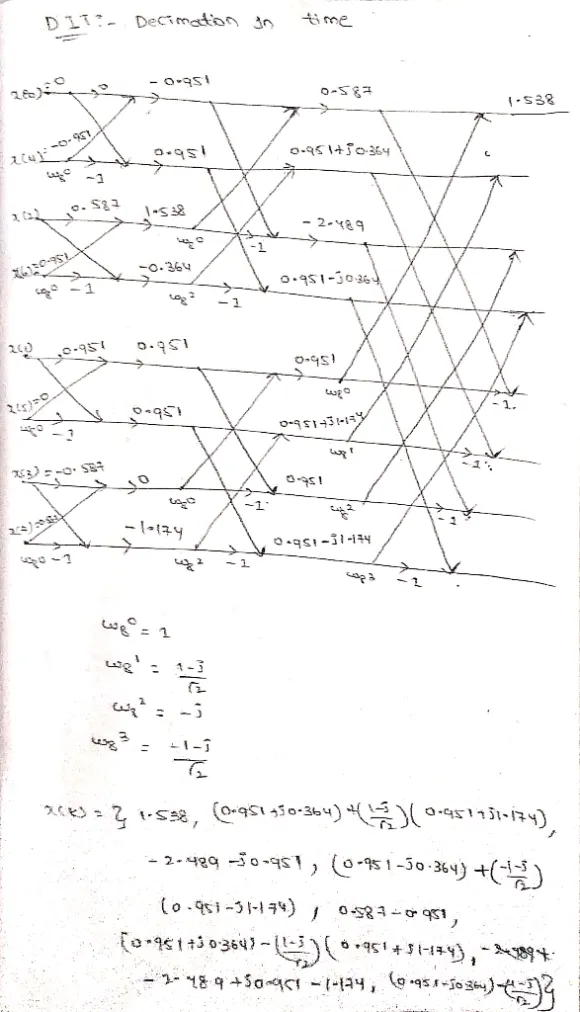 Fast Fourier Transform using signal flow graph. (Use decimation in