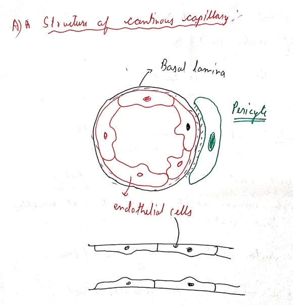Continuous capillaries are seen in the skin, connective tissue, muscle, lungs and brain.