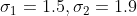 Construct a 95% confidence interval for mu 1minusmu 2. Two samples are randomly selected from each population. The sample statistics are given below. n 1 equals 50, n 2 equals 60, x overbar 1 equals25, x overbar 2 equals23, sigma 1 equals1.5, sigma 2 equals1.9