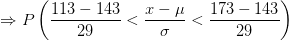mean given by μ=143 lb and a standard deviation given by σ=29
