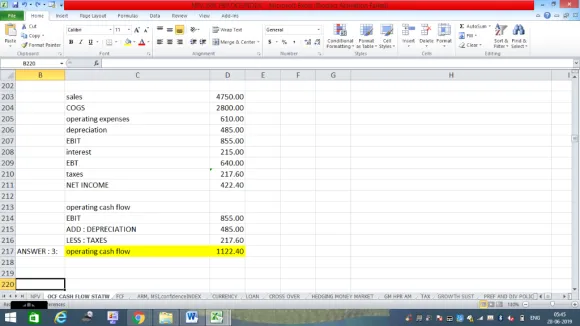 Given the following income statement data, calculate operating cash flow; net sales = $4750, cost of goods sold = $2,800, operating expenses = $610, depreciation = $485, interest expense = $215, tax rate = 34%.