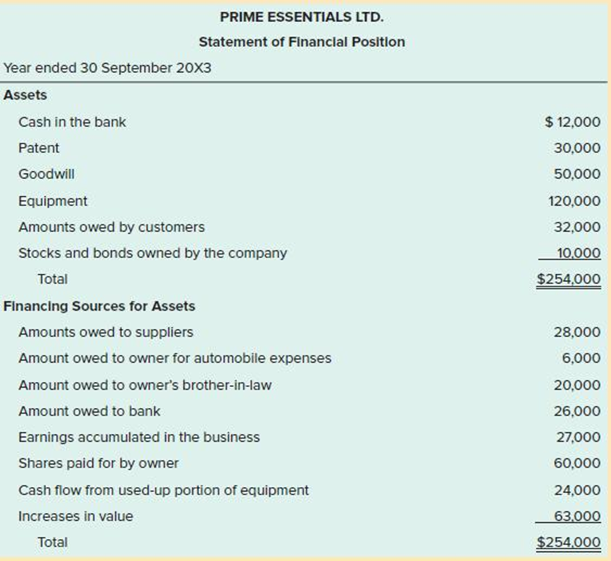 Prime Essentials Ltd. is a small private corporation. The owner plans to approach the bank for an additional loan or a line of credit to facilitate expansion. The company bookkeeper, after discussion with the owner of the company, has prepared the following draft SFP for the fiscal year ended 30 September 20X3, the company’s first full year of operations: