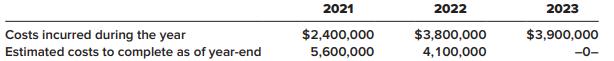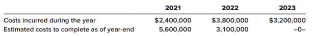 In 2021, the Westgate Construction Company entered into a contract to construct a road for Santa Clara County for $10,000,000. The road was completed in 2023. Information related to the contract is as follows: